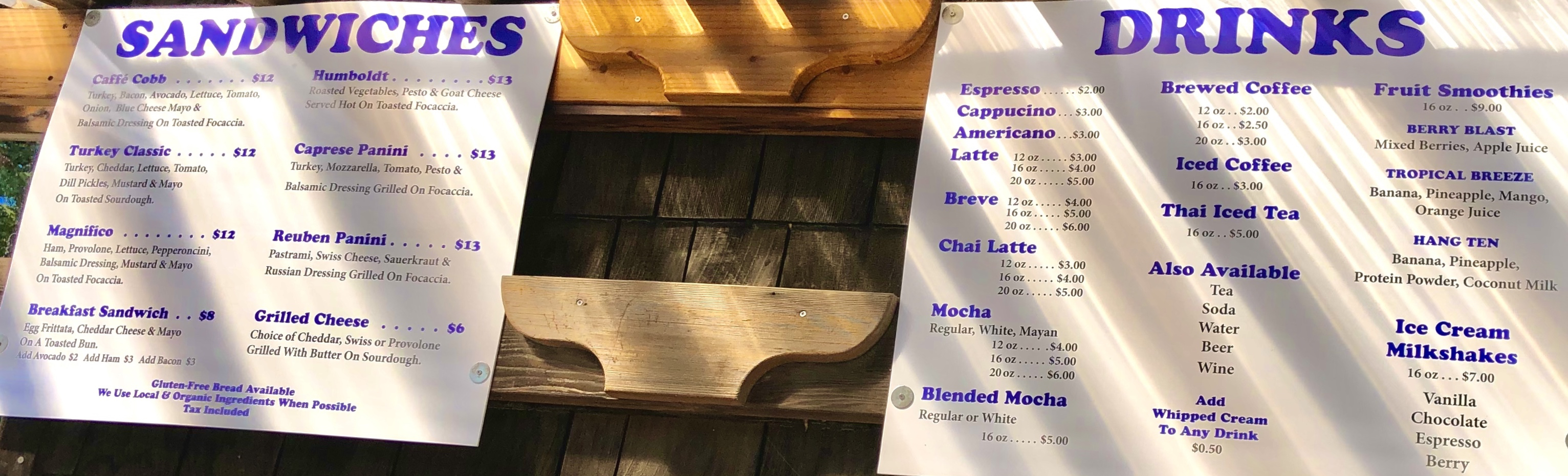 Great place to drop in for great food and coffee on your drive in or out of Shelter Cove or while picking something up at Whitethorn Construction.